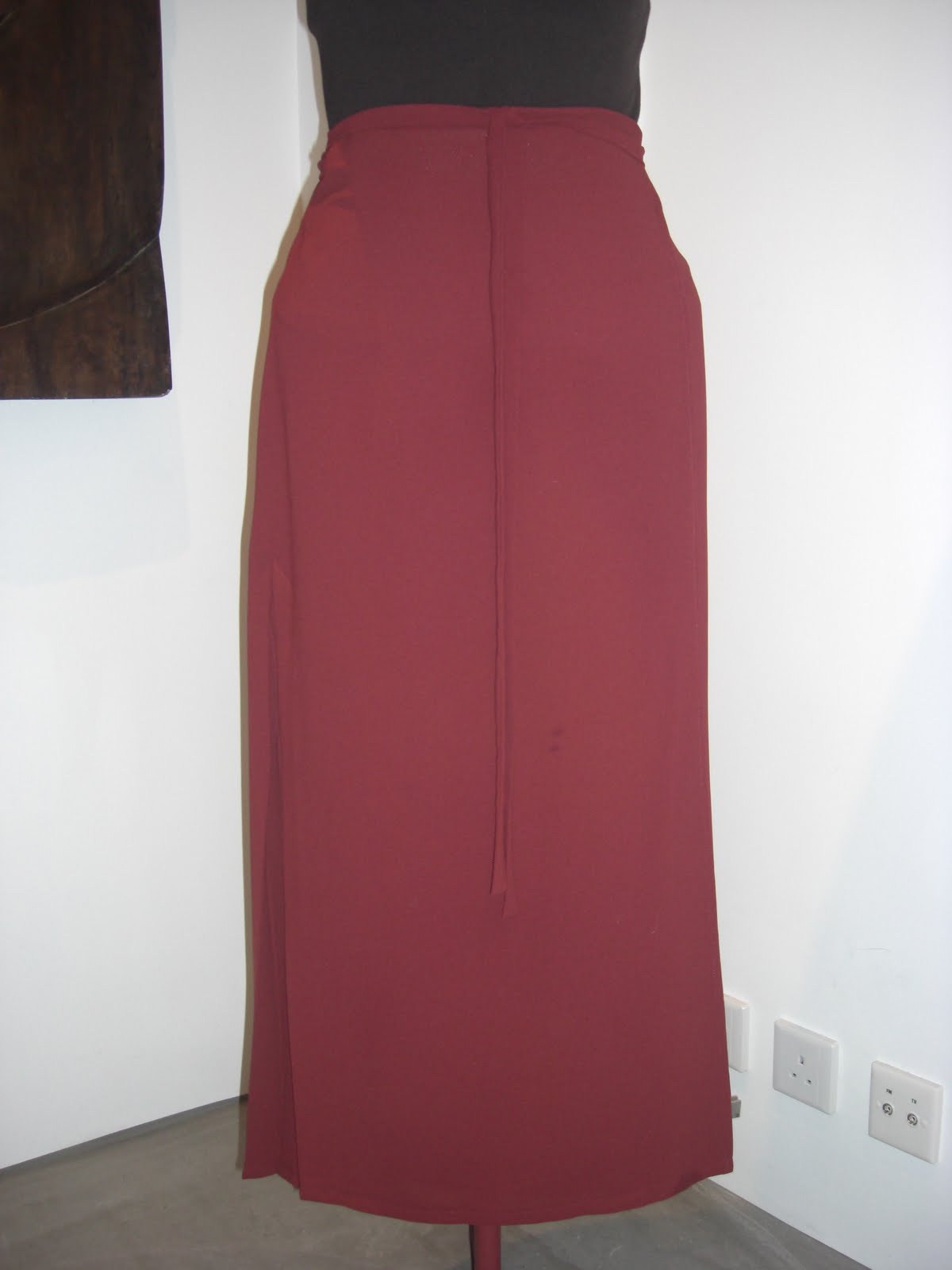 This is made in a terracotta crepe. To be honest, crepe is not the best choice for this skirt - it's springy texture makes it difficult to get a sharp press on the pleats, but it does drape really nicely - swings and roundabouts I suppose!While I love the look of wrap skirts, they can be problematic to wear. I am hoping that the side slit/pleats detail will add a decent amount of walking ease and limit any wardrobe malfunctions. We will see when I give it a real life road test, I probably will not be brave enough to wear this out in a typhoon though!