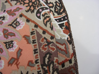 I may not have picked out this print if I had not been forced down a specific colour palette by my other top, but I love it. It has a lot of great colours so I think it will really work in my wardrobe - current and future. One side of the selvedge is extra wide and helpfully has little boxes showing all the colours in the print so I have trimmed this off to take fabric shopping with me. Don't worry I won't be succumbing to bubblegum pink pants, but most of the colours are really workable.