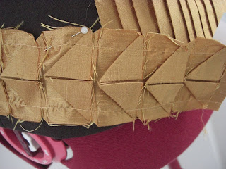 In case I can't find any trim I really want to use with whatever fabric I end up getting, I decided to experiment a bit with self fabric. I'm loving all these but don't worry I will try and restrain myself from using them all on the same dress!