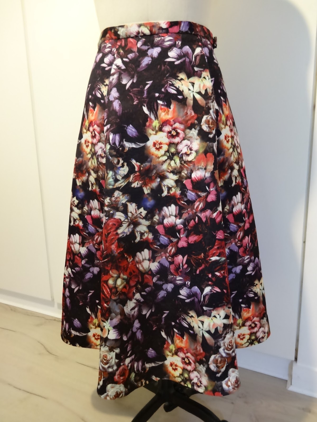 I used this floral fabric, something like a jacquard or matelasse, it's quite stiff which works well for a party skirt to give it some structure and I love the dark, moody, oil painting-like quality of the flowers.
